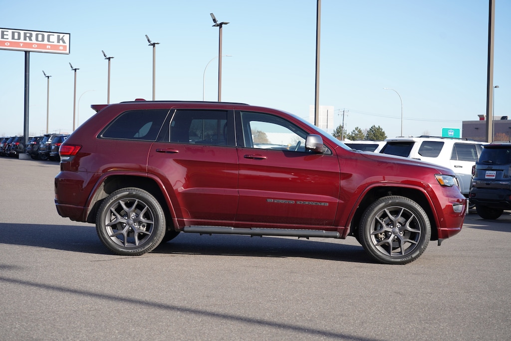 Bluetooth, Backup Camera, Sunroof/Moonroof, Navigation System, Leather Seats, PANORAMIC MOON ROOF!!, NAVIGATION!!, LEATHER!!, KEYLESS REMOTE ENTRY!!, ALLOY WHEELS!!, PUSH BUTTON START!!, BLUETOOTH!!, FRONT AND REAR HEATED SEATS!!, HEATED SEATS!!, COOLED SEATS!!, HEATED AND COOLED SEATS!!, HEATED STEERING WHEEL!!, BACK UP CAMERA!!, BLIND SPOT DETECTION!!, DUAL CLIMATE CONTROL!!, 4X4!!, 1-Year SiriusXM Guardian Trial, 230MM Rear Axle, 3.45 Rear Axle Ratio, 4-Wheel Disc Brakes, 4G LTE Wi-Fi Hot Spot, 506 Watt Amplifier, 6 Speakers, 7 & 4 Pin Wiring Harness, 8.4" Touchscreen Display, 80th Anniversary Luxury Group, ABS brakes, Active Noise Control System, Adaptive Cruise Control w/Stop, Advanced Brake Assist, Air Conditioning, Alloy wheels, AM/FM radio: SiriusXM, Anti-whiplash front head restraints, Apple CarPlay, Apple CarPlay/Android Auto, Audio memory, Auto High Beam Headlamp Control, Auto-dimming door mirrors, Auto-dimming Rear-View mirror, Automatic temperature control, Berber Floor Mats w/80th Anniversary Tag, Bi-Xenon High-Intensity Discharge Headlamps, Black Roof Molding, Body Color Claddings, Body Color Door Handles, Body Color Shark Fin Antenna, Brake assist, Bumpers: body-color, Cargo Compartment Cover, Class IV Receiver Hitch, Compass, Dark Day Light Opening Moldings, Dark Headlamp Bezel Finish, Dark Lens Taillamps, Delay-off headlights, Driver door bin, Driver vanity mirror, Dual front impact airbags, Dual front side impact airbags, Dual-Pane Panoramic Sunroof, Electronic Stability Control, Emergency communication system: SiriusXM Guardian, Four wheel independent suspension, Front Accent/Body Color Fascia, Front anti-roll bar, Front Bucket Seats, Front Center Armrest w/Storage, Front dual zone A/C, Front fog lights, Front LED Fog Lamps, Front reading lights, Full Speed FWD Collision Warn Plus, Fully automatic headlights, Garage door transmitter, Google Android Auto, GPS Antenna Input, GPS Navigation, Granite Crystal Exterior Accents, Granite Crystal Exterior Badging, Granite Crystal Exterior Mirror Caps, Granite Crystal/Black Grille, HD Radio, Heated door mirrors, Heated front seats, Heated Second Row Seats, Heated steering wheel, Heavy-Duty Engine Cooling, Illuminated entry, Integrated Voice Command w/Bluetooth, Jeep 80th Anniversary Badges, Jeep 80th Anniversary Edition, Knee airbag, Lane Departure Warning Plus, Leather Shift Knob, Leather Trimmed Bucket Seats, Leather Trimmed Bucket Seats (JY), LED Daytime Running Headlamps, Low tire pressure warning, LT. Tungsten Interior Accent Stitching, Memory seat, Navigation System, Normal Duty Suspension, Occupant sensing airbag, Outside temperature display, Overhead airbag, Overhead console, Panic alarm, Parallel & Perp Park Assist w/Stop, ParkView Rear Back-Up Camera, Passenger door bin, Passenger vanity mirror, Piano Black/Anod. Gunmetal Interior Accents, Power door mirrors, Power driver seat, Power Liftgate, Power moonroof, Power passenger seat, Power steering, Power Tilt/Telescope Steering Column, Power windows, Premium Alpine Speaker System, Premium Lighting Group, Quick Order Package 2BK 80th, Radio data system, Radio: Uconnect 4C Nav w/8.4" Display, Rain Sensitive Windshield Wipers, Rear Accent/Body Color Fascia, Rear anti-roll bar, Rear Load Leveling Suspension, Rear reading lights, Rear seat center armrest, Rear window defroster, Rear window wiper, Remote keyless entry, Roof rack: rails only, Security system, SiriusXM Satellite Radio, SiriusXM Traffic Plus, SiriusXM Travel Link, Speed control, Speed-sensing steering, Speed-Sensitive Wipers, Split folding rear seat, Spoiler, Steering wheel mounted audio controls, Tachometer, Telescoping steering wheel, Tilt steering wheel, Traction control, Trailer Tow Group IV, Trip computer, Turn signal indicator mirrors, Variably intermittent wipers, Ventilated Front Seats, Voltmeter, Wheels: 18" x 8.0" Tech Gray Diamond Cut, Wheels: 20" x 8.0" Granite Crystal Aluminum. Recent Arrival! New Price!