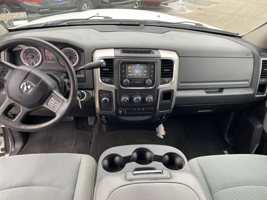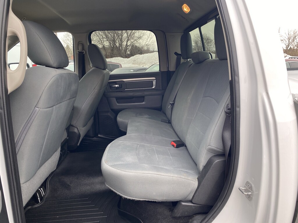 FREE CARFAX REPORT AVAILABLE!!, 4X4!!, 180 Amp Alternator, 3.42 Axle Ratio, 4-Wheel Disc Brakes, 40/20/40 Split Bench Seat, 6 Speakers, ABS brakes, Air Conditioning, AM/FM radio: SiriusXM, Black Exterior Mirrors, Brake assist, Bumpers: chrome, Center Hub, Charge Only Remote USB Port, Cloth 40/20/40 Bench Seat, Compass, Delay-off headlights, Driver door bin, Dual front impact airbags, Dual front side impact airbags, Electronic Stability Control, Electronically Controlled Throttle, Exterior Mirrors w/Heating Element, Front anti-roll bar, Front Armrest w/Cupholders, Front Center Armrest w/Storage, Front reading lights, Fully automatic headlights, GPS Antenna Input, Heated door mirrors, Hemi Badge, Illuminated entry, Integrated Voice Command w/Bluetooth, Locking Tailgate, Low tire pressure warning, Manual Adjust Seats, Manufacturer's Statement of Origin, Media Hub (USB, AUX), Next Generation Engine Controller, Occupant sensing airbag, Outside temperature display, Overhead airbag, Overhead console, Panic alarm, Passenger door bin, Passenger vanity mirror, Power door mirrors, Power steering, Power windows, Quick Order Package 2FG SLT, Radio data system, Radio: Uconnect 3 w/5" Display, Rear seat center armrest, Rear step bumper, Remote keyless entry, SiriusXM Satellite Radio, Speed control, Tachometer, Tilt steering wheel, Tip Start, Traction control, Trip computer, Variably intermittent wipers, Vendor Painted Cargo Box Tracking, Voltmeter, Wheels: 18" x 8.0" Steel Chrome Clad. Recent Arrival!